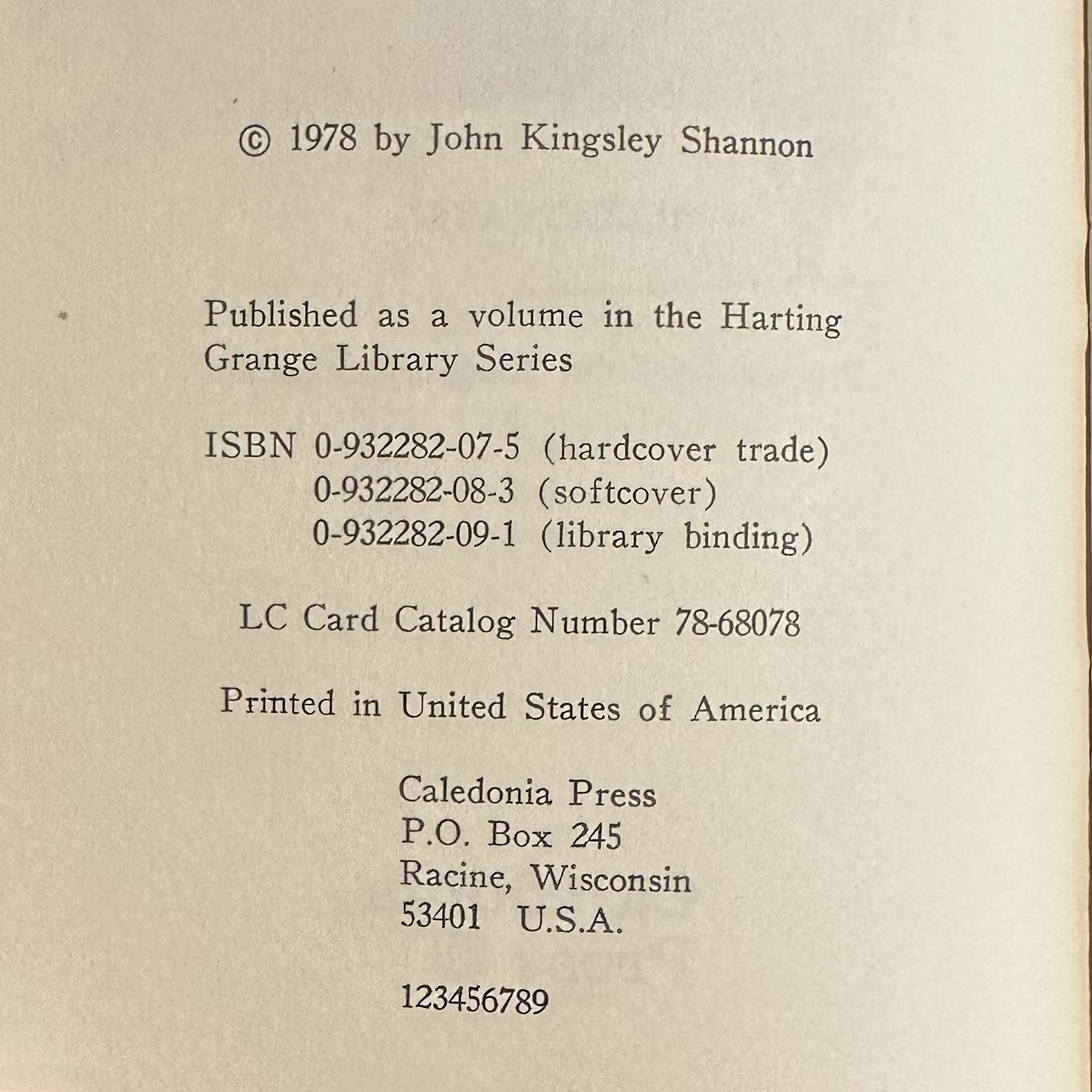 Printed: 1978 Caledonia Press