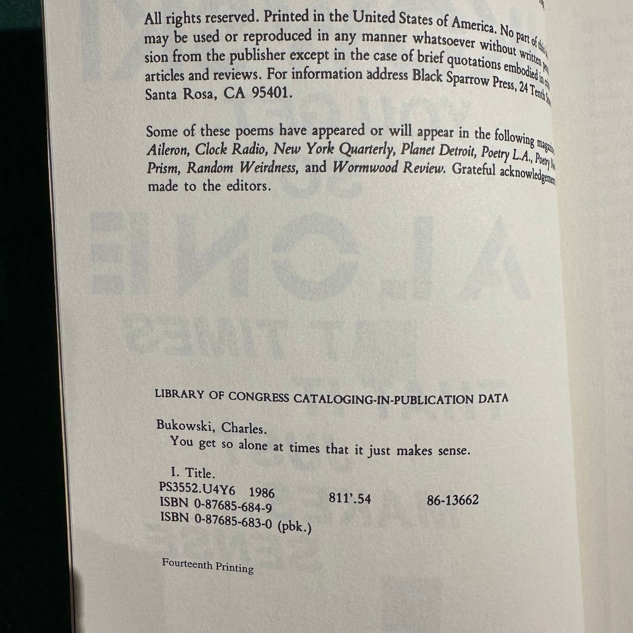 Printed: 2001 Black Sparrow