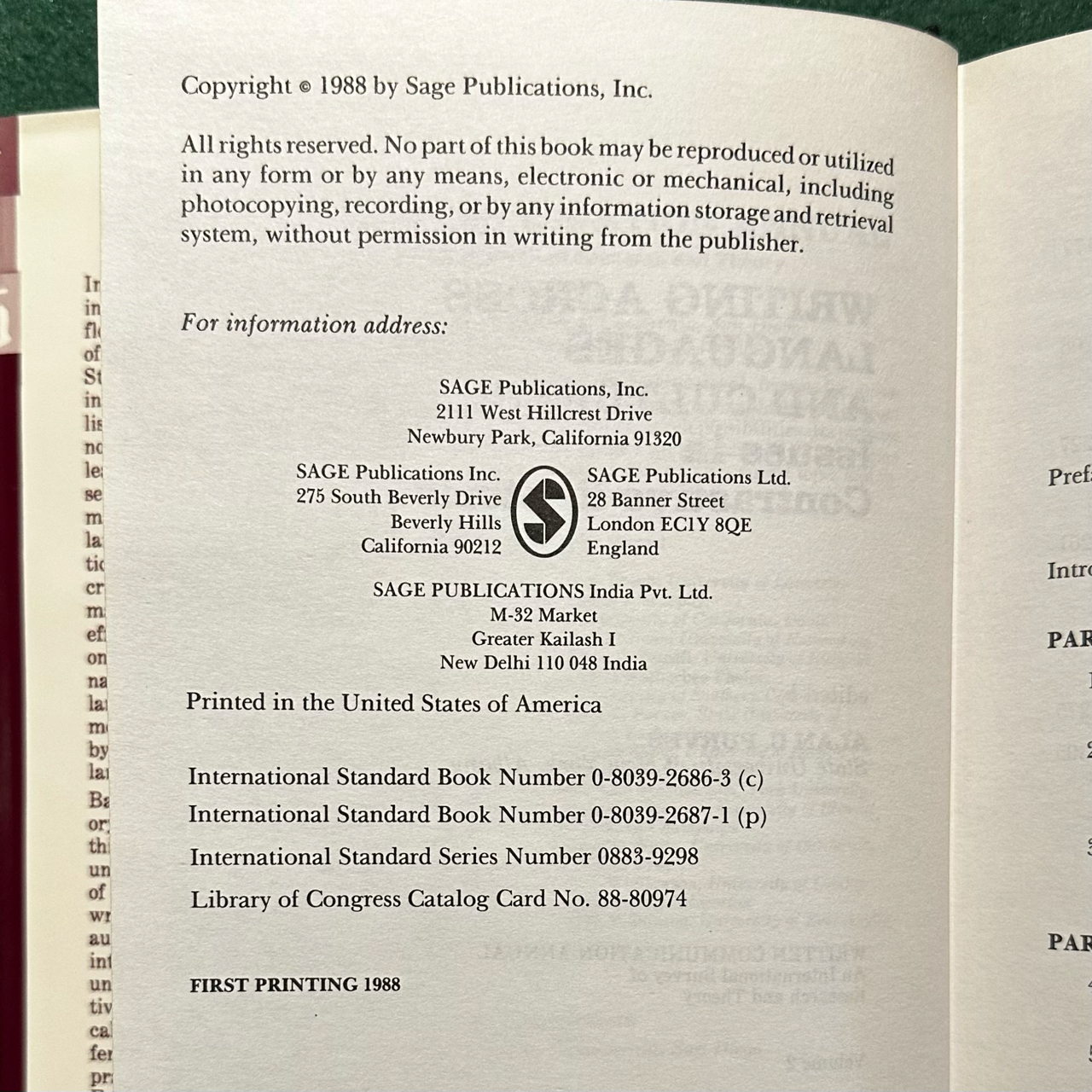 Printed: 1988 Sage Publications