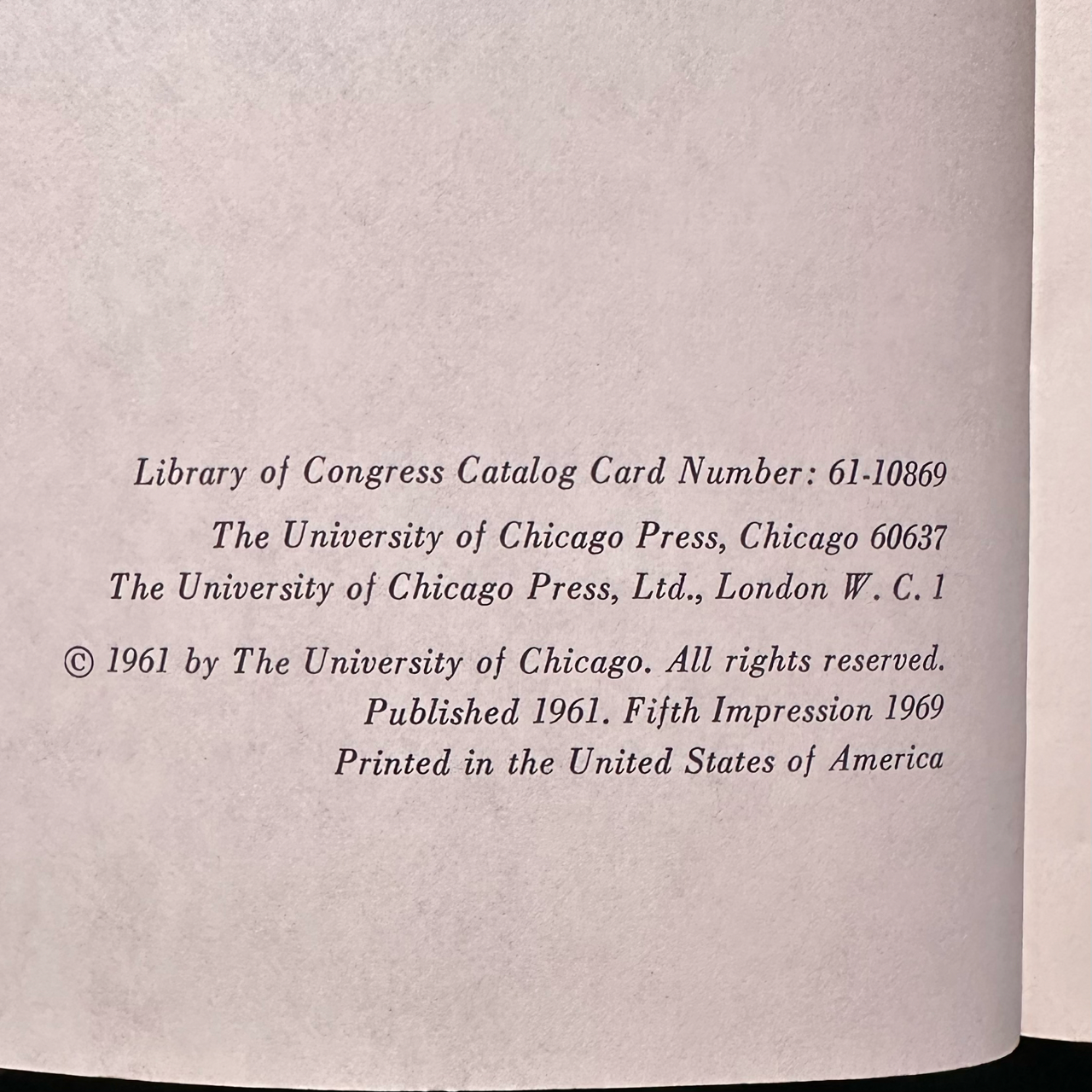Printed: 1969 University of Chicago Press