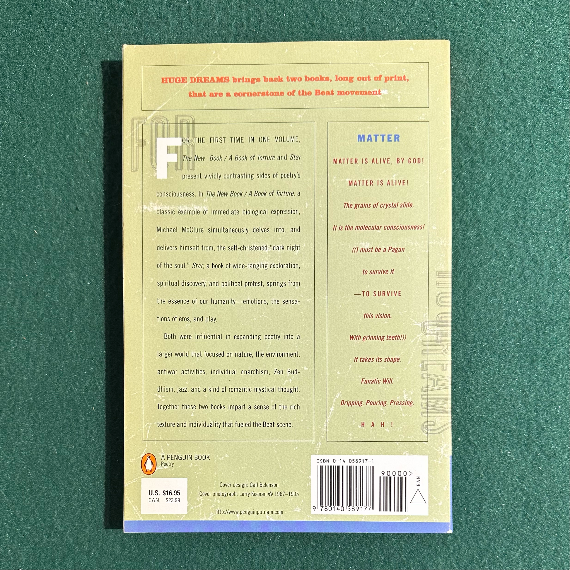Vintage Poetry Paperback: Michael McClure - Huge Dreams FIRST PRINTING